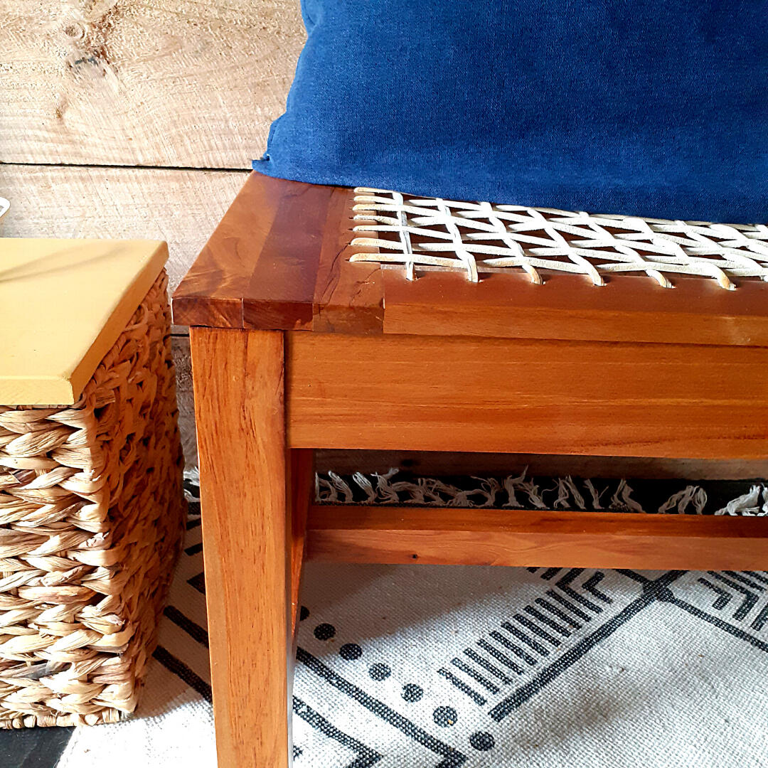 This beautiful, one-of-a-kind Riempie Bench was made by woodworker Stefan Benadé from old bed frames made from Rimu, a native New Zealand timber. It was finished with timber protection oil.The design mixes simple, modern aesthetics with the traditional handwoven method of riempie (untanned leather strips). The leather will stretch over time, given it a beautiful, worn aesthetic.It is versatile and can be used as a bench, storage space for blankets or a coffee table with a twist.Maker: Stefan Benadé Studios$NZ 900 | Only 1 AvailableApproximate DimensionsHeight 44cm x Width 45.5cm x Length 93.5cmCaring for Riempie FurnitureTo maintain the clean, white look of the rawhide strips (riempie), brush it down to remove most of the dirt and dust.